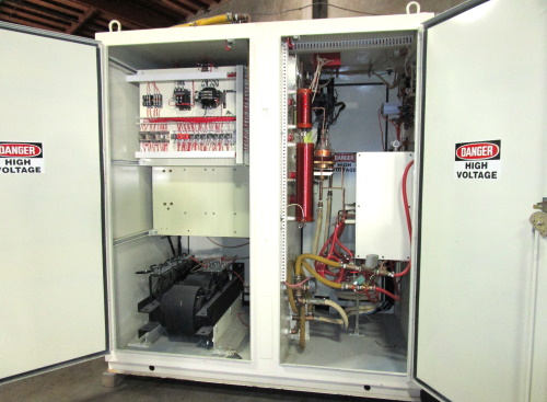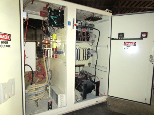 Description | Pillar Induction Heater Model CE300 This Is An "AS IS" Item For Only $998.00 Be Sure To Inquire About All Details SPECS: 220/440V, 3Ph, 30 Continuous KW 450Khz, 70KKva, PL. Voltage 11,500 Volt Unfiltered 12,000V. Peak, RF Generator Some Gauges Are Missing, Main Parts Intact - Tube and Main Transformer Stock #761G |