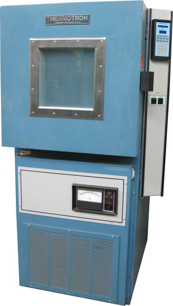 | Thermotron Temperature Test Chamber Model #S-4, I.D. 20"W X 20"D X 20"H, O.D. 31"W X 41"D X 79"H, Temperature Range: -70 to +170 Deg. C (Air Cooled) Programmable Control, Over and Under Temperature Protection, Stainless Steel Interior, Environmentally Friendly Refrigerants, Includes Viewing Window, Castors, Shelf, Power: 230V, 1Ph, 30 Amps, Stock #228J |
