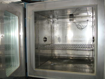 | Thermotron Temperature Chamber Model #S-8-3800 Internal Dimensions: 24"W X 24"D X 24"H External Dimensions: 35"W X 49"D X 71"H Temperature Range: -70 to +170 Deg. C (Air Cooled) Thermotron #3800 Controller, Over Temperature Protection 2X 1.5" Side Feed-Thru Ports Stainless Steel Interior, Environmentally Friendly Refrigerants Includes Window, Light, Castors, 1 Shelf Power: 230V, 3Ph, 20 Amps Stock #CT-620i |