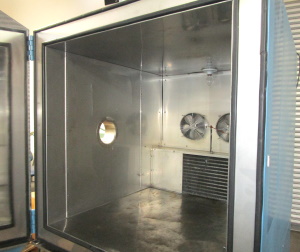 ![]() Envirotronics 27 Cubic Ft. Temperature Test Chamber ![]() Stainless Steel Interior of Envirotronics Chamber With Port