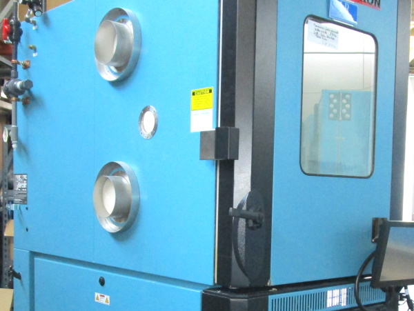 | Thermotron Temperature Humidity Chamber Model #SE-300-4-4 SALE PENDING.... SPECS: I.D. 24"W X 26"D X 28"H O.D. 42"W X 70"D X 80"H Temperature Range: -70 to +180 Deg. C - Air Cooled 10% to 98% Humidity, GN2 Purge Ramp Rates: Heat -65C to +71C 15.1 CPM Cool +71C to -65C 5.2 CPM Thermotron #8800 Touchscreen Control W/Temp Limit IEEE-488 Ethernet Environmentally Friendly Refrigerants Stainless Steel Interior Includes Viewing Window, Interior Light, Castors 1 Shelf, Custom Manual 6" Dia. Opposing Side Feed-Thru Ports Power: 208v, 3Ph, 53 Amps Stock #257L |