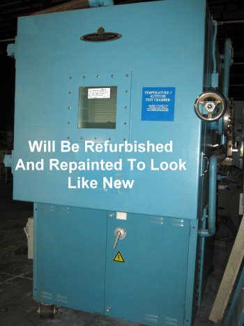 | Description | Thermotron Altitude Temperature Chamber Model #FA-27-CHA-705-705 I.D. 36"W X 35"D X 35"H O.D. 63"W X 88"D X 101"H Temperature Range: -65 to +170 Deg. C 350 to -70F in 20 Minutes Altitude: ambient to 100,000 Feet Ambient to 70,000 approx 15 min. Watlow #F-4 Control, Over and Under Temperature Protection 6" Dia. Side Feed-Thru Port Environmentally Friendly Refrigerants, Stainless Steel Interior Includes Window, Light, Castors, Shelf Power: 480V, 3Ph, 42 Amps, 60Hz Stock #165J |