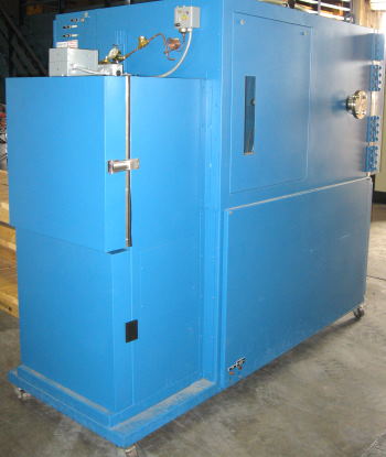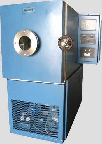 | Tenney Altitude Temperature Test Chamber Model T5ST-SPL, I.D. 20.75"W X 26"D X 24.75"H, 5 Cubic Ft. of Work Space Chamber Platen Measures 18" X 20", O.D. 48"W X 90"D X 74"H, Temperature Range: -65 to +100 Deg. C - LN2 Cooled, Note: LN2 Cold Vapor Trap is installed in the suction line. This Device protects the vacuum pump by preventing condensable gases such as water vapor from entering the vacuum pump oil., Altitude levels Range from Site to Approx. 250,000 ft. (.0153 Torr), Altitude conditions are attained by a vacuum system that utilizes an oil-filled, rotary vany type vacuum pump., Altitude / Pressure Conditions Are Uncontrolled Versatenn III Control, Over and Under Temperature Protection, Stainless Steel Interior, Environmentally Friendly Refrigerants, Includes Window, Light, Castors, Manual Power: 230V, 1Ph, 25 Amps Stock #215J |