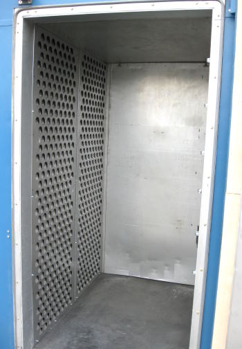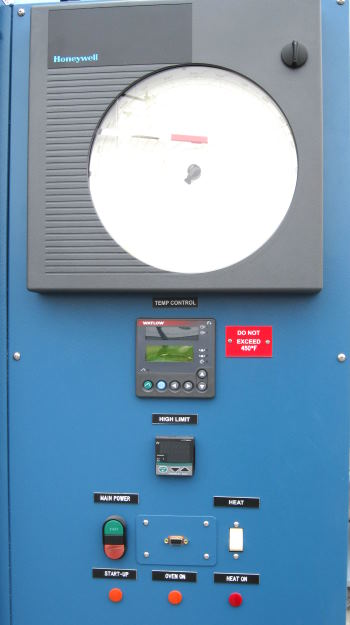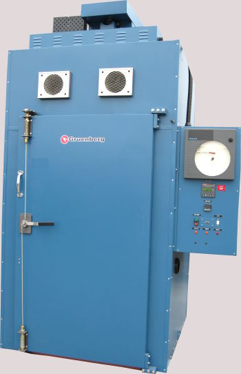 | Gruenberg Batch Walk In Oven Model #T45H720 Internal Dimensions: 36"W X 48"D X 72"H External Dimensions: 74"W X 64"D X 123"H Maximum Temperature: 450 Deg. F Watlow #F-4 Control, Honeywell Chart Recorder #DR-4300 Over Temperature Protection, Forced Exhaust Power: 480V, 3Ph, 75 Amps Stock #588i |